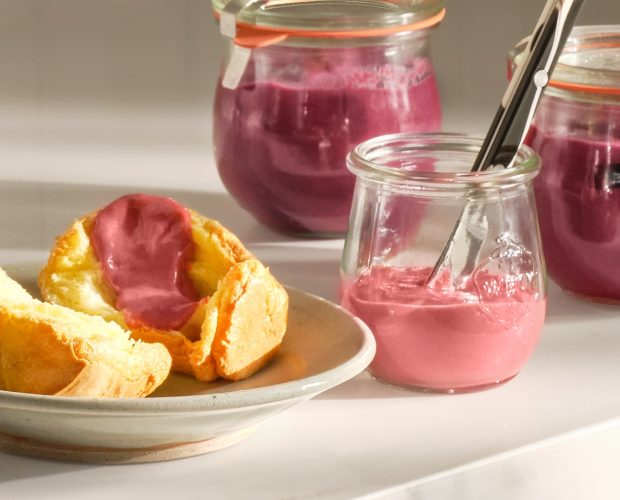 by Nathalie onFrystorkade jordgubbar och skållade mandlar spelar huvudrollerna i denna fräscha variant av den virala Dubai…